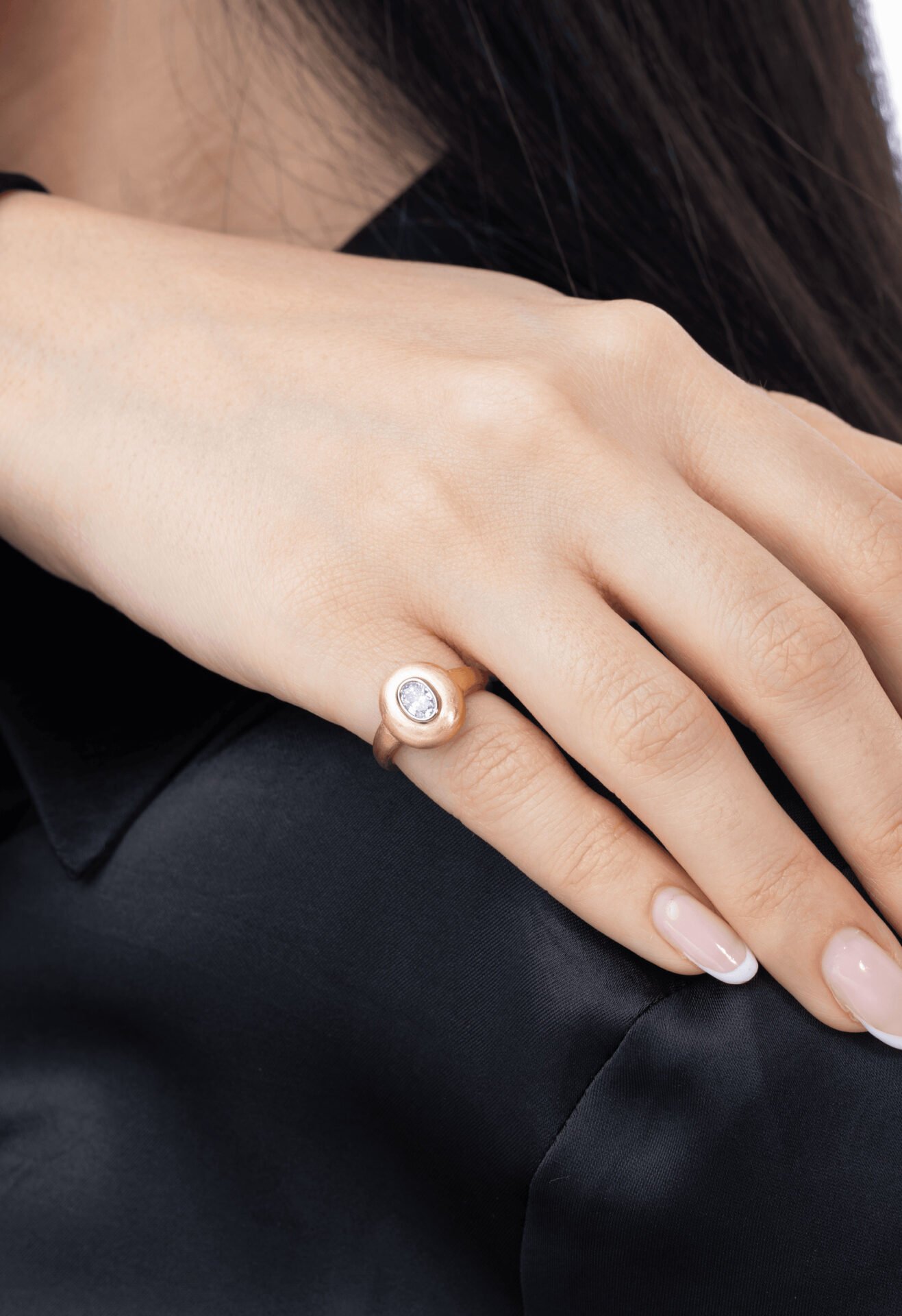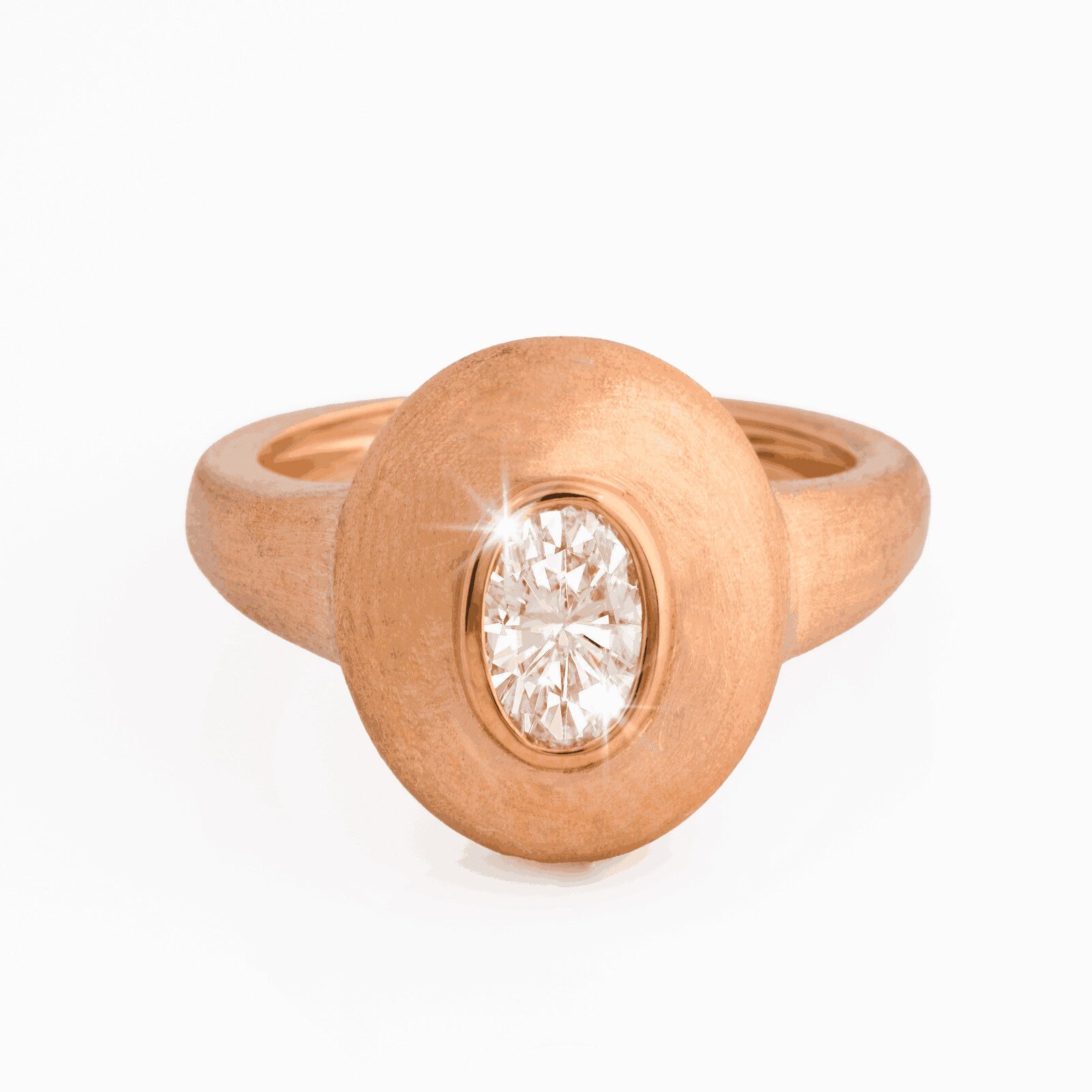 18K Rose Gold Oval Diamond Ring offers a smooth oval diamond set in warm rose gold. The design blends classic shape with a soft pink shine. This ring feels light and comfortable on your finger.