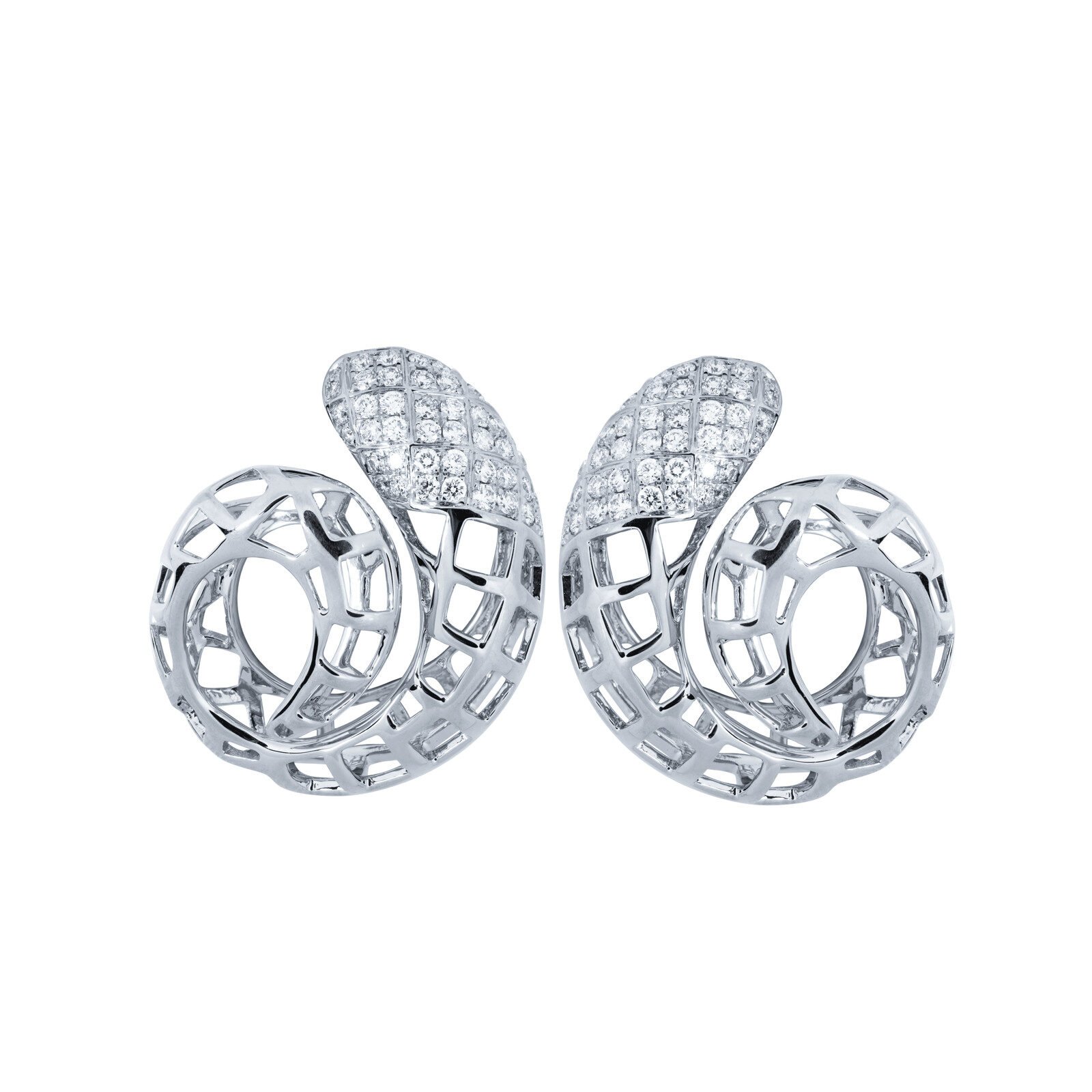 18K White Gold Diamond Cage Earring