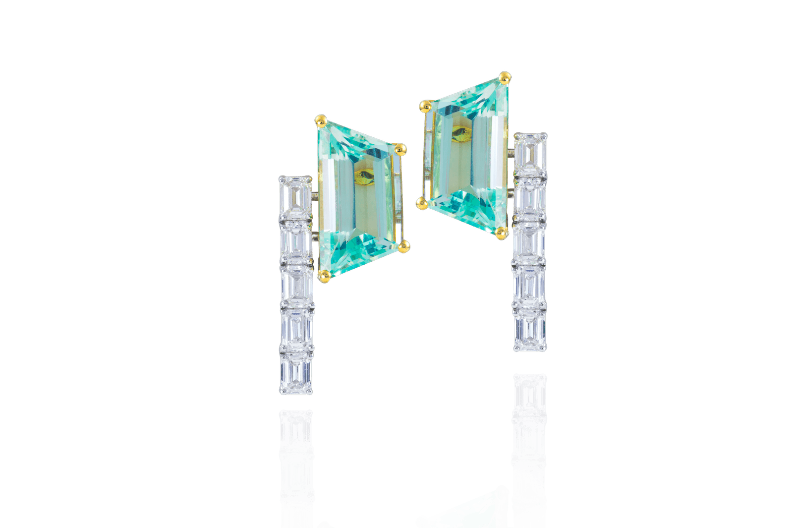 18K white gold holds a rich green gemstone earring at the center. Small diamonds surround it with a soft, bright sparkle. The mix of white gold and green stone gives a fresh and clean style. The design feels light on the ears and easy to wear all day. A simple choice for any outfit.