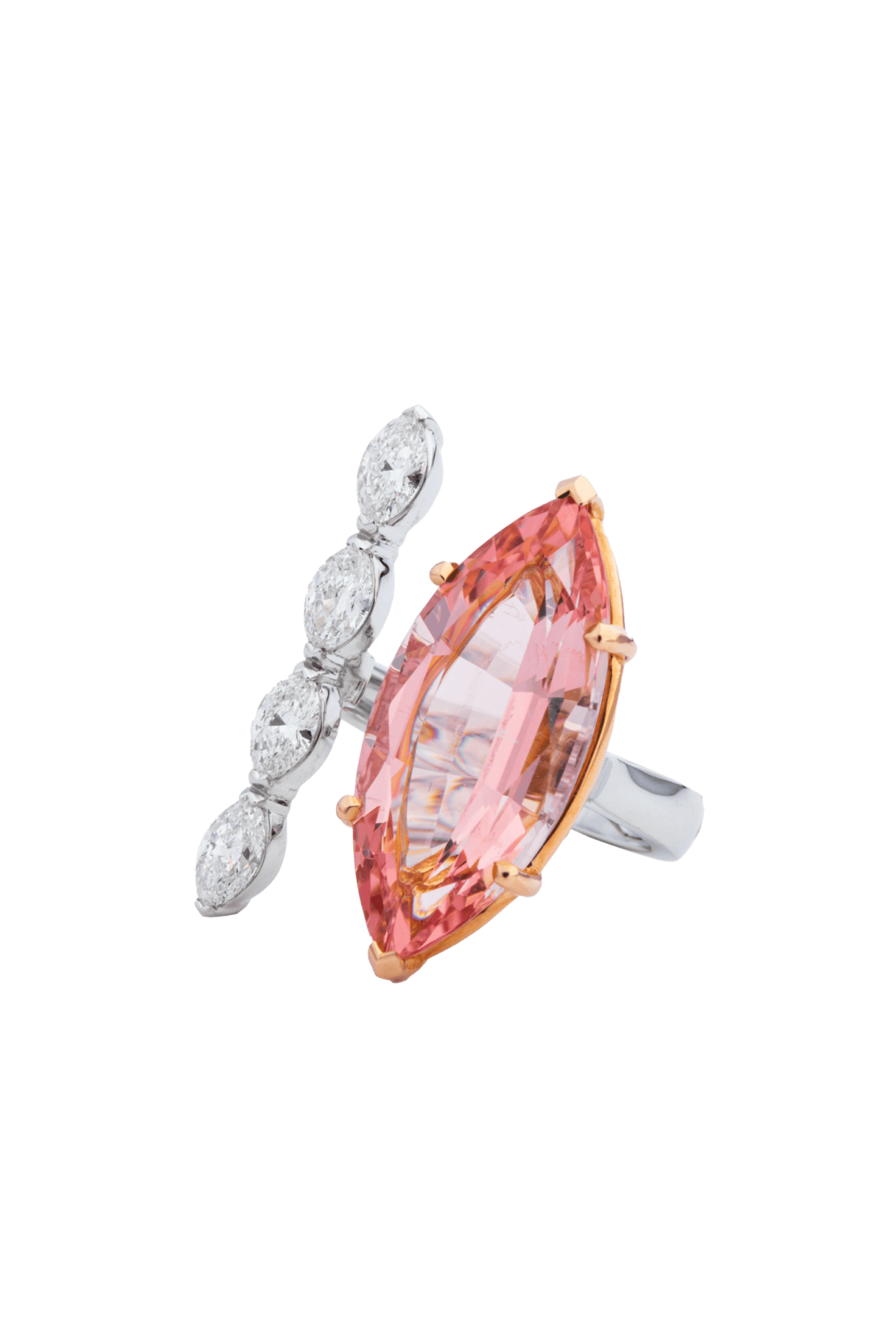 18K white gold holds a soft pink morganite in a marquise cut Ring. Small round diamonds add extra shine on the band. The design feels light and clean. The gemstone stands out with a gentle color that fits many styles. Great for gifting or treating yourself.