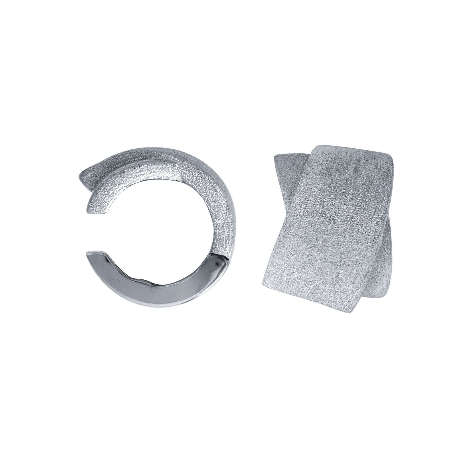 18K White Gold Sand Ear Cuff shows a soft texture that looks like fine sand. The surface has a smooth matte finish that feels calm and modern. This ear cuff wraps around the ear with no need for a piercing.