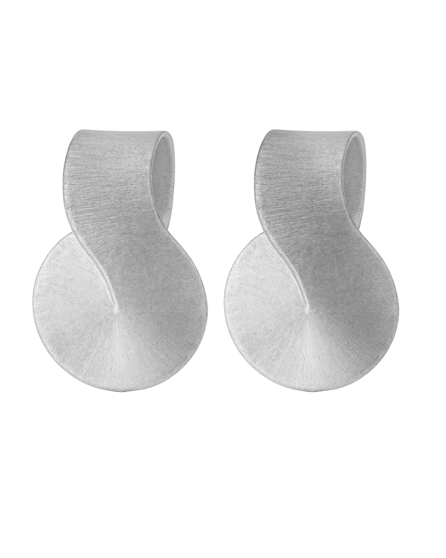 The 18K White Gold Sculptural Earrings feature a fluid silhouette with a brushed finish, blending contemporary design with understated luxury.