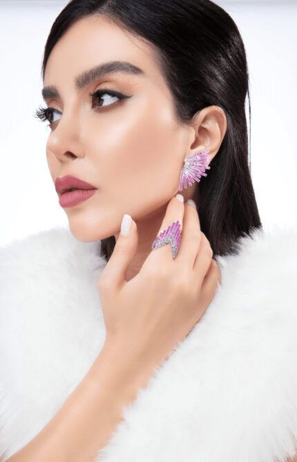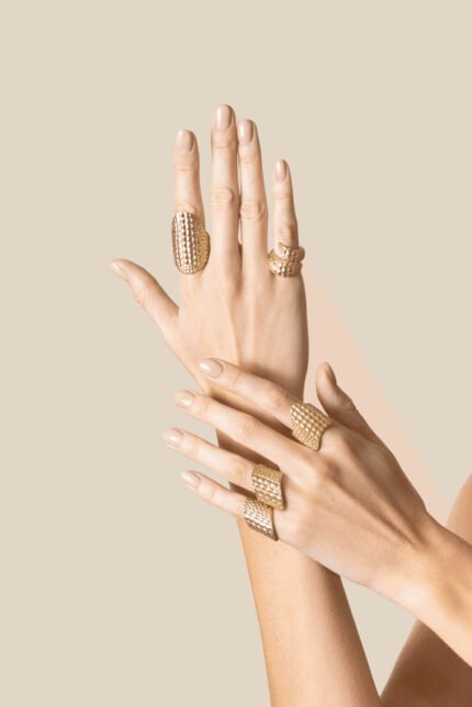 The 18K Yellow Gold Baguette Diamond Fan Ring stands out with its architectural fan design and baguette-cut diamonds. A contemporary masterpiece that reflects power, precision, and feminine allure.