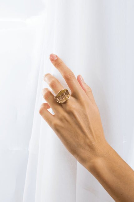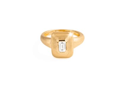 The 18K Yellow Gold Brushed Pear Diamond Ring by Maison H Jewels, from Roma, pairs a sculptural brushed finish with a brilliant pear-cut diamond.