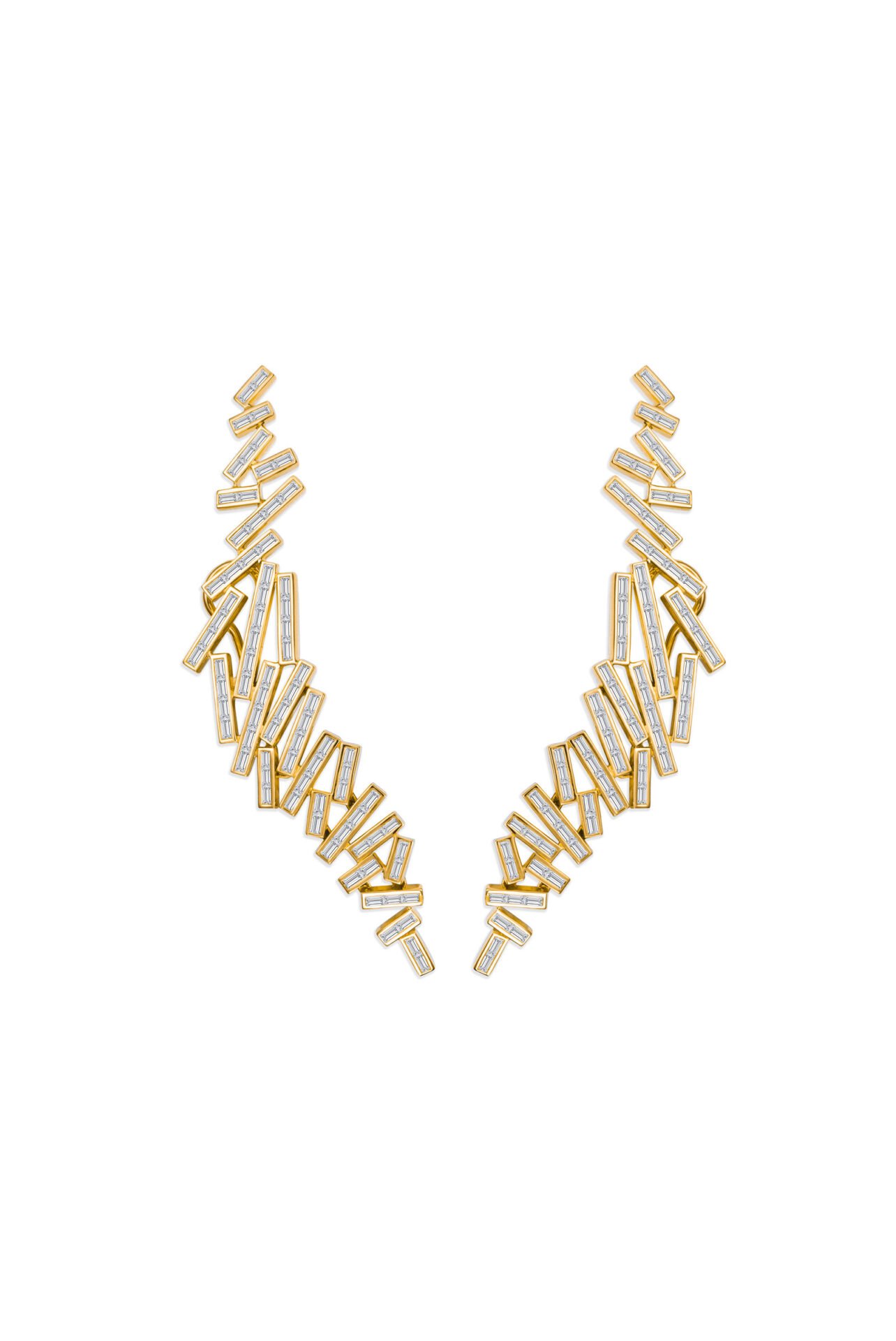 18K Yellow Gold Diamond Abstract Earring shows bright diamonds in a unique shape. The yellow gold adds warm color and smooth shine. This earring feels light and comfortable to wear. It suits both daily looks and special events.