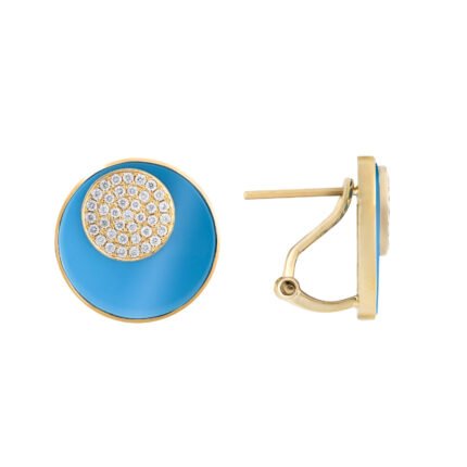 18K Yellow Gold Diamond Turquoise Earring 30mm