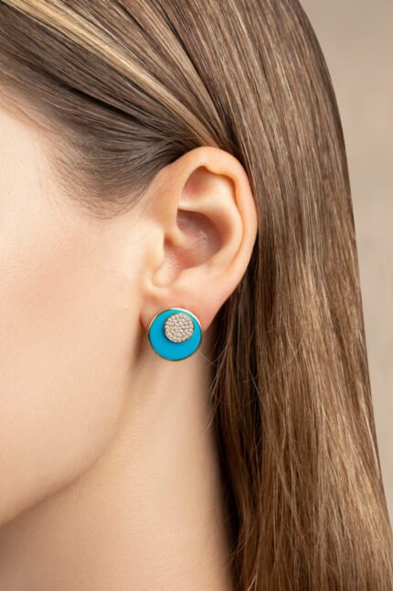 Stand out with these bold 30MM earring made from 18K yellow gold. They shine with fine diamonds and smooth turquoise stones. The gold gives a warm glow, while the turquoise adds a bright blue touch. The round shape and larger size make them perfect for parties or special days. Diamonds sparkle gently with each move. Turquoise brings a fresh and rich color to your look.