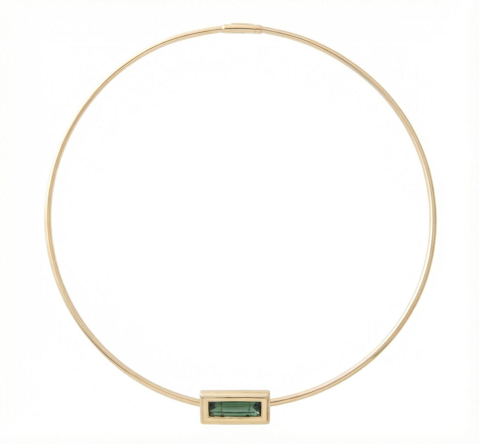 The 18K Yellow Gold High Gloss Green Tourmaline Bar Necklace is a refined expression of modern luxury. Crafted in polished 18K yellow gold, this elegant collar necklace showcases a horizontal emerald-cut green tourmaline set in a smooth bezel bar design. The high gloss finish amplifies the rich warmth of gold while highlighting the vibrant green tourmaline’s natural brilliance. Perfect for layering or wearing as a standalone statement, the 18K Yellow Gold High Gloss Green Tourmaline Bar Necklace brings contemporary sophistication to any jewellery collection.