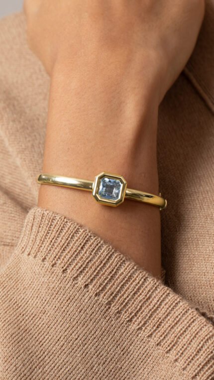 18K Yellow Gold Aqua Marine Brushed Bangle