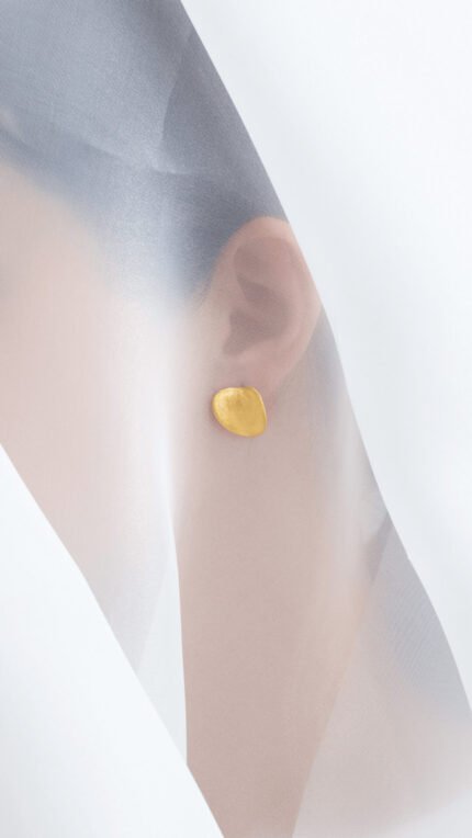 The 18K Yellow Gold Mother of Pearl & Stone Brushed Earring from Maison H Jewels features a radiant brushed gold center surrounded by diamond accents and natural MOP. A luxurious diamond earring in yellow gold with mother of pearl, perfect for refined elegance.