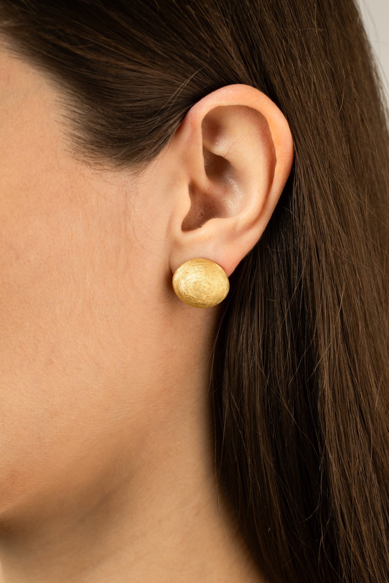 18K yellow gold sands earring shows soft texture and warm glow. The surface looks like tiny grains of sand, giving a natural and gentle feel. Yellow gold adds rich color and bright shine to the design. This earring feels light and fits well on the ear. It pairs easily with both casual and formal clothes.
